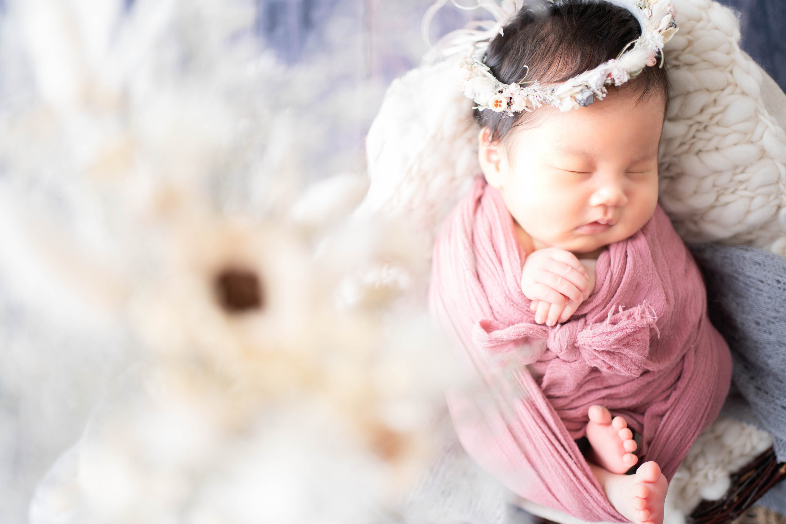 生後間もない赤ちゃんの姿を、お腹にいるときのような神秘的な写真に収める「ニューボーンフォト」。生まれてから約3週間と、ほんのわずかな期間にしか撮影できない貴重な写真です。
