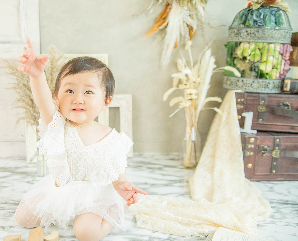 福島県郡山市内に、スタジオがあります。赤ちゃんのありのままの姿を可愛く撮影できる、ベストな環境と機材を揃えています。衛生・安全面への配慮も徹底。おくるみなどの撮影小物はすべて清潔なものをご用意しておりますため、安心してご利用ください。撮影小物はお持ち込みいただくことも可能です。